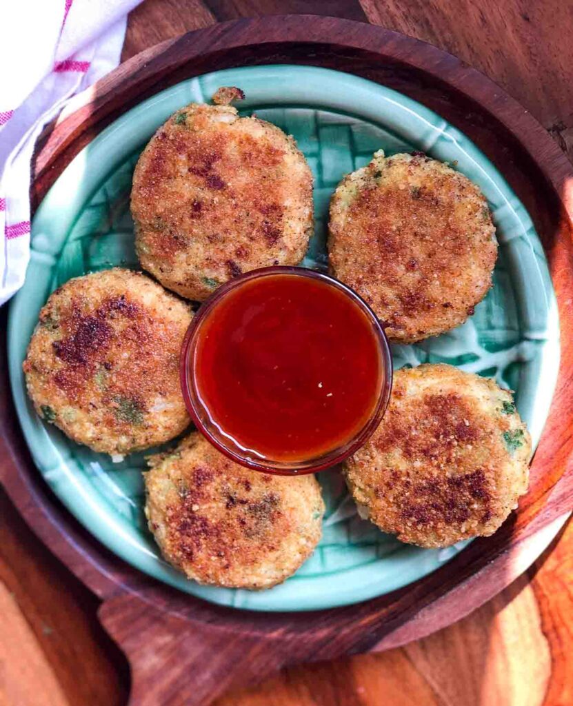 রান্না-সব উপকরণ মিশিয়ে চ্যাপ্টা করে কাটলেট বানান। ডিম ও ব্রেডক্রাম্বে গড়িয়ে তেলে ভেজে নিন।