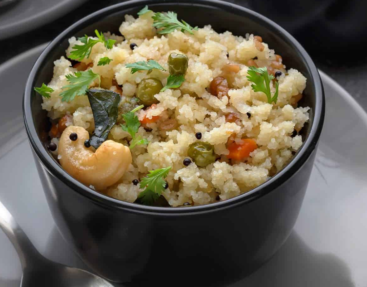 কী চাই – সুজি – ১ কাপ,গাজর কুচি – ½ কাপ,বিনস কুচি – ¼ কাপ,মটরশুঁটি – ¼ কাপ,পেঁয়াজ কুচি- ½ কাপ,সরষের দানা- ½ চা চামচ,কারিপাতা -৬–৭টি,কাঁচালঙ্কা- ১টি,তেল- ১ টেবিল চামচ,নুন- স্বাদমতো,জল- ২ কাপ। রান্না- কড়াইতে তেল গরম করে সরষে ও কারিপাতা ফোড়ন দিন। পেঁয়াজ ও লঙ্কা ভেজে সবজি দিন। নরম হলে জল ও নুন দিয়ে ফুটতে দিন। এবার সুজি দিয়ে নাড়তে থাকুন যাতে দলা না হয়। ঘন হলে নামিয়ে কাপ বা বাটিতে ঢেলে পরিবেশন করুন।