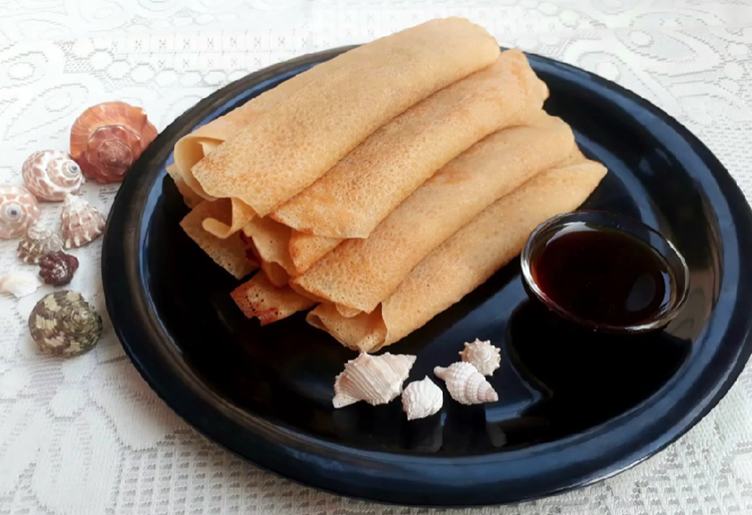 গোলা তৈরি: চাল গুঁড়ো, ময়দা, সুজি, নুন একটি বাটিতে মিশিয়ে নিন। ধীরে ধীরে জল বা দুধ দিয়ে মসৃণ ও পাতলা গোলা তৈরি করুন। গোলা যেন খুব ঘন না হয়।