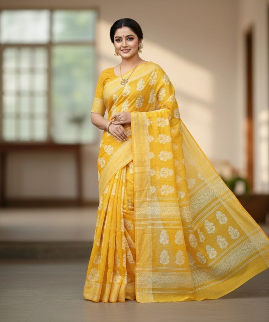 কটন বাগ প্রিন্ট- মধ্যপ্রদেশের ঐতিহ্যবাহী বাগ প্রিন্ট করা কটন শাড়ি মানেই প্রকৃতি, রং ও নকশার এক অনবদ্য মেলবন্ধন।বাগ মধ্যপ্রদেশের একটি জায়গার নাম ,সেই থেকেই বাগ প্রিন্ট।খাঁটি কটনের উপর প্রাকৃতিক রঙে ছাপা জ্যামিতিক ও ফুলের মোটিফ শাড়িটিকে করে তোলে শীতল, আরামদায়ক ও দৃষ্টিনন্দন।প্রতিটি বাগ প্রিন্ট শাড়িতে ধরা থাকে নর্মদা তীরের শতাব্দীপ্রাচীন ব্লক প্রিন্টিং শিল্পের ছাপ।দৈনন্দিন ব্যবহার থেকে উৎসবের সাজ ,সব ক্ষেত্রেই এই শাড়ি এনে দেয় সহজ-সরল অথচ রুচিশীল সৌন্দর্য।দাম – ১৪১৭ টাকা,ডিসকাউন্টের পর ১১৩৪ টাকা।